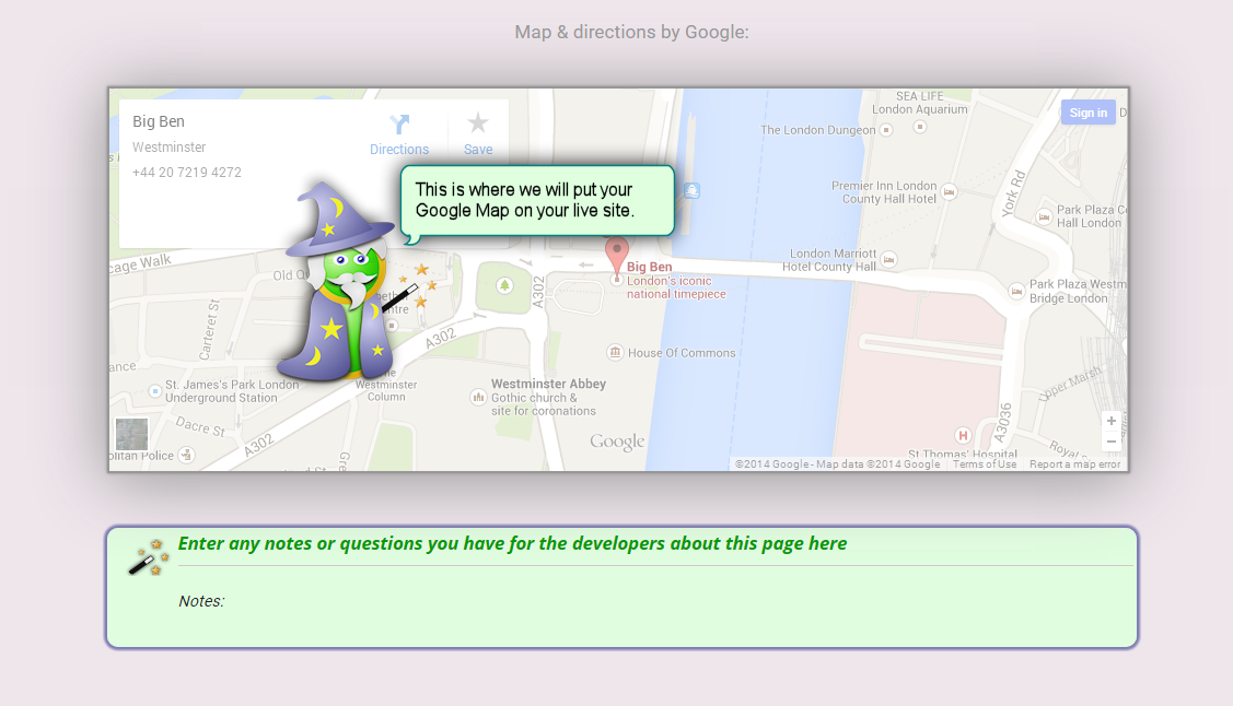 An example of the Wizard in action can be seen on the Google Maps image, indicating to the site owner where their custom map would appear.