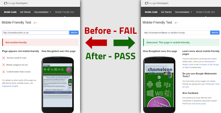 - We also offer full chameleon site upgrades which can make your whole site fully mobile-friendly